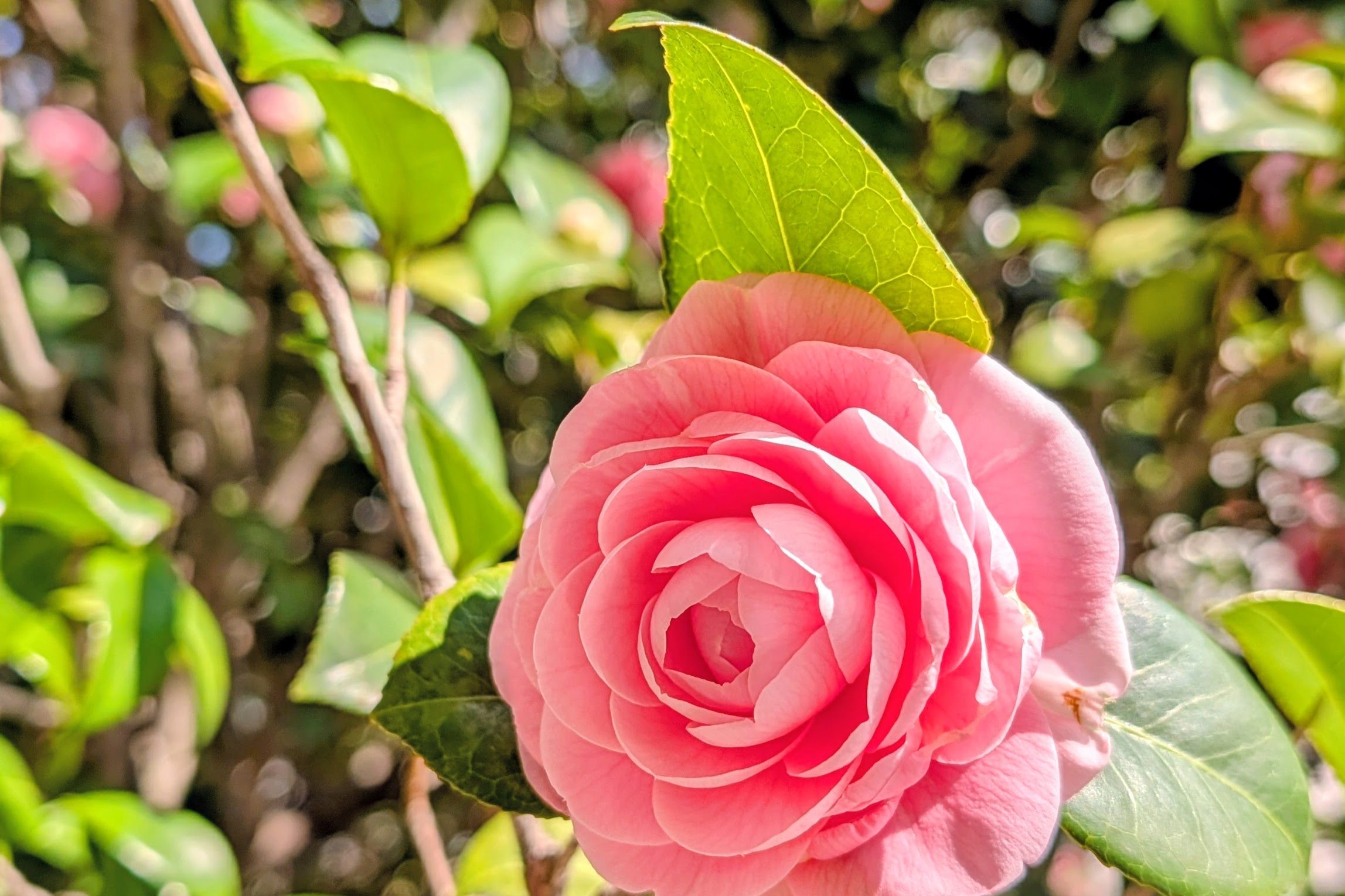 二人でキョロキョロと辺りを見回すと、建物の花壇に可憐なジャスミンと、凛とした椿が咲いていました。